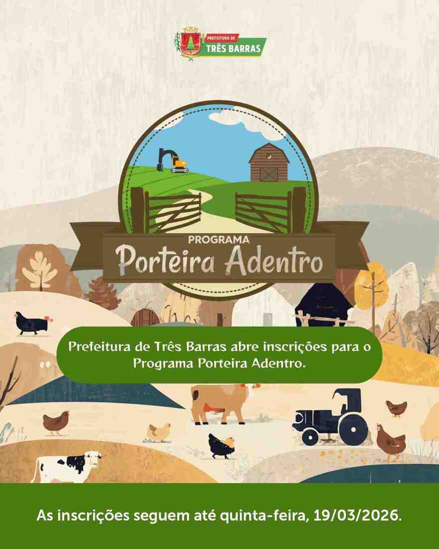 A Prefeitura de Três Barras, por meio da Secretaria Municipal de Agricultura, anunciou a abertura das inscrições para uma nova etapa do Programa Porteira Adentro. Desta vez, o foco do atendimento são os produtores rurais e moradores da localidade de São João dos Cavalheiros.