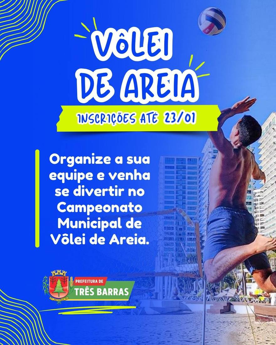 A Prefeitura de Três Barras através da Secretaria Municipal de Esporte, Cultura e Turismo abriu nesta quarta-feira, 07, as inscrições para os Campeonatos Municipais de Futebol e Vôlei de Areia.