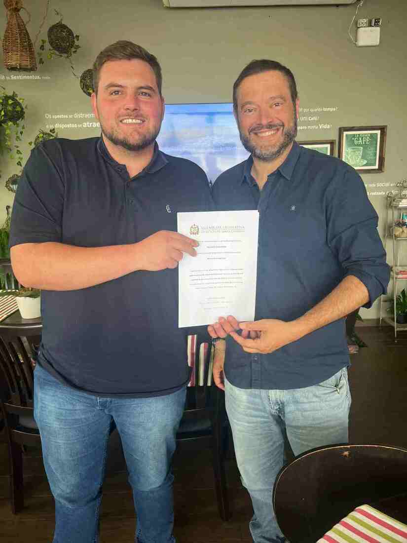 Vereador Ivan Krauss(Progressistas), ao lado de Ricardo, assessor do deputado Altair Silva (Progressistas), durante agenda voltada à conquista de recursos para Canoinhas. (Fotos: Assessoria)