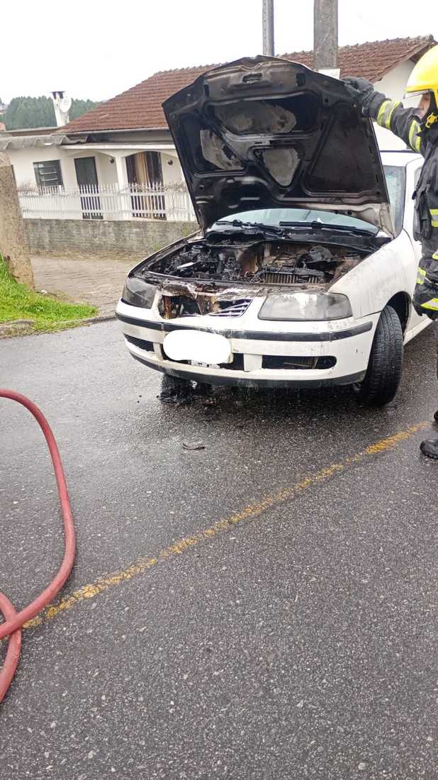 A ocorrência foi atendida pela guarnição do Corpo de Bombeiros Militar de Rio Negrinho, com apoio da viatura ABTR-123, após solicitação via COBOM. No local, os bombeiros encontraram um VW Saveiro, com placas de Rio Negrinho, tomado por chamas e intensa fumaça, especialmente na região do motor.