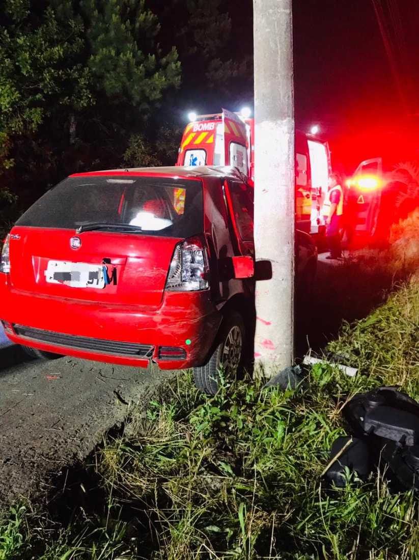 No local, os bombeiros confirmaram tratar-se de uma colisão de um automóvel contra um poste de energia elétrica. O veículo envolvido era um Fiat Palio vermelho, com placas de Curitiba (PR).