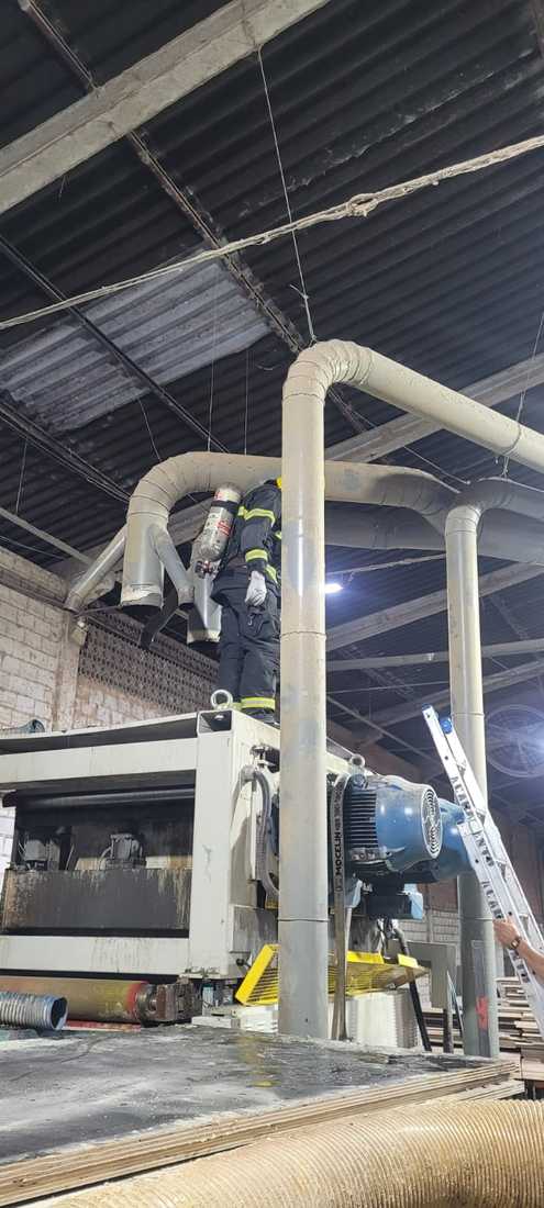 Ao chegarem ao local, os bombeiros confirmaram que se tratava de um princípio de incêndio no sistema de exaustão de serragem de uma máquina utilizada no processo de esquadrejamento de chapas de compensado. O foco já havia sido controlado pelos funcionários da empresa antes da chegada da equipe.