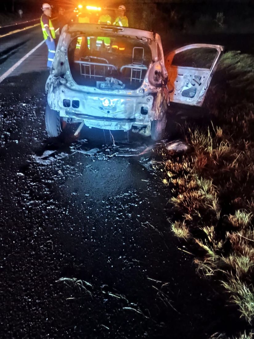 Na madrugada deste sábado (20), um carro foi destruído por um incêndio enquanto estava parado no acostamento da BR-116, no km 58, na localidade de Passo Ruim, em Papanduva. O caso ocorreu por volta das 3h40.