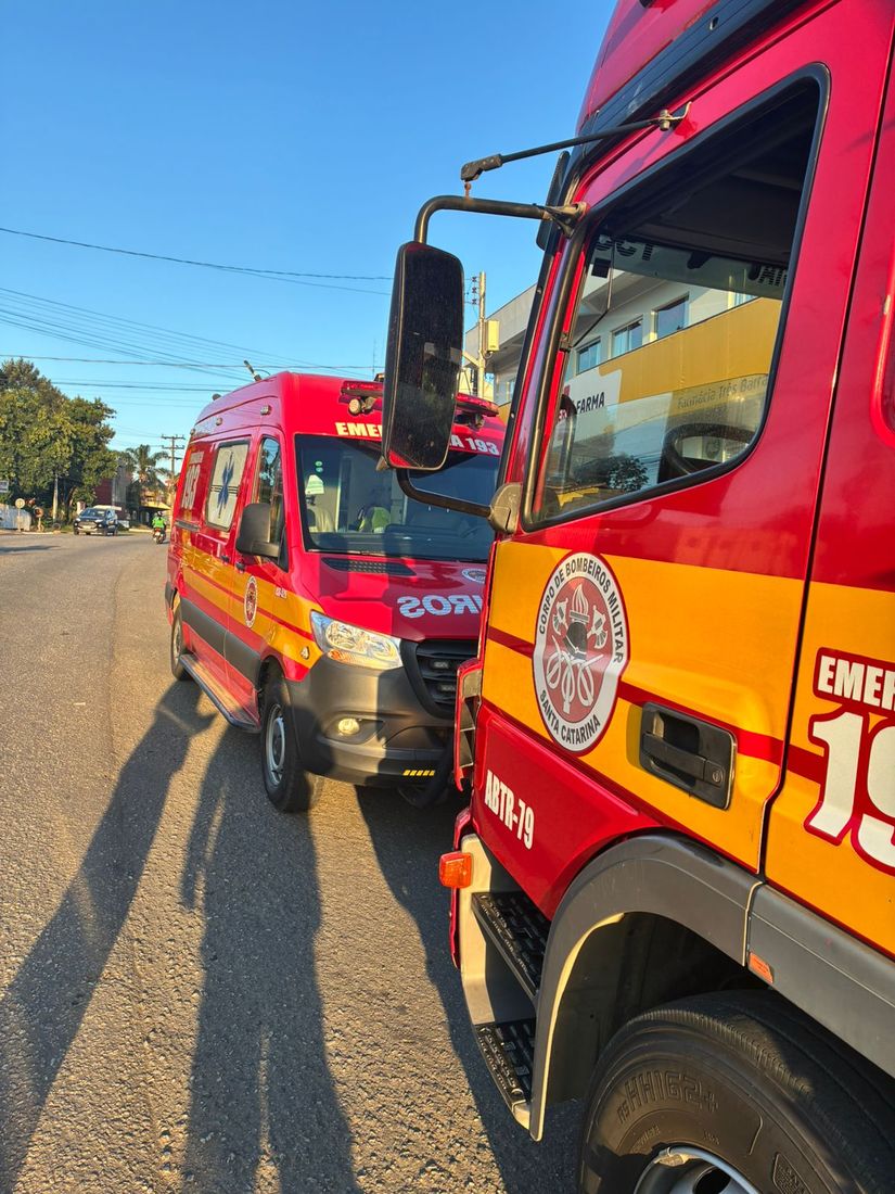 O Corpo de Bombeiros Militar foi acionado por volta das 18h14 de sexta-feira (06) para atender uma ocorrência de acidente de trânsito do tipo colisão entre motocicleta e automóvel, na Avenida João Batista Pacheco, no bairro Vila Nova, próximo ao cemitério, em Três Barras.