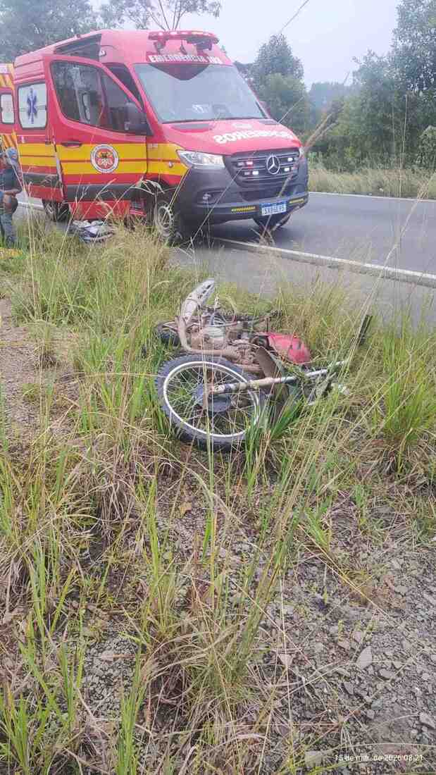Um jovem de 18 anos ficou ferido após um acidente de trânsito envolvendo uma motocicleta na manhã deste domingo (15), por volta das 7h51, na BR-280, próximo ao trevo secundário de acesso ao município de Irineópolis.