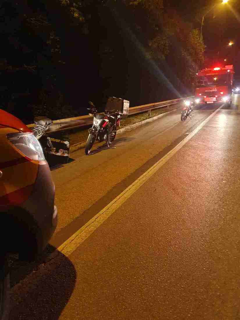 Segundo o Corpo de Bombeiros, as equipes foram acionadas para atender a ocorrência e, ao chegarem no local, encontraram as duas motos no acostamento da rodovia. Um dos condutores, um jovem de 20 anos, não se feriu e permanecia caminhando pelo local.