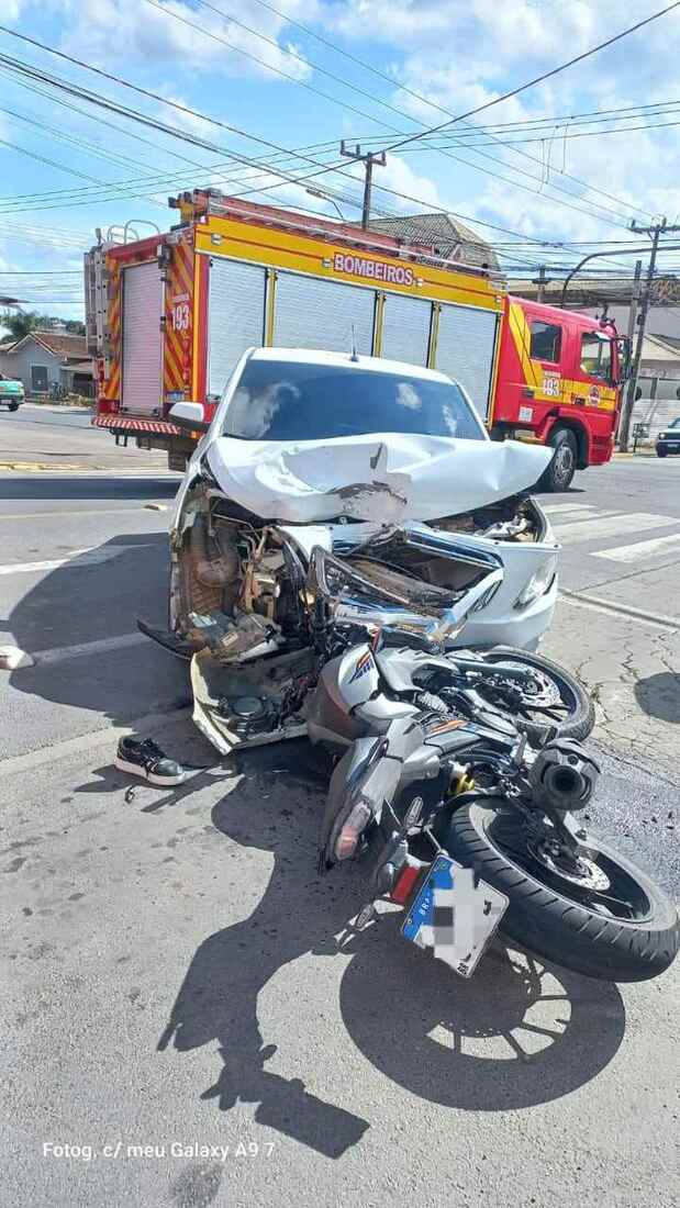 Um acidente entre um carro e uma motocicleta deixou um jovem ferido na tarde desta quarta-feira (15), em Canoinhas. A colisão aconteceu por volta das 15h26, na Rua Eugênio de Souza, em frente ao posto Dibrape.