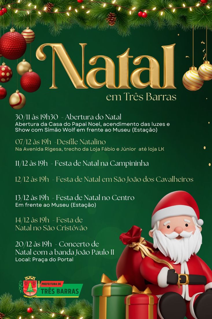 "A Prefeitura Municipal de Três Barras, convida todos para a programação especial de Natal!