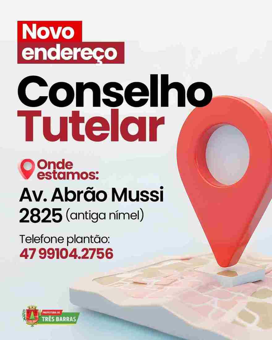 Você sabia que o Conselho Tutelar de Três Barras mudou de endereço? Isso mesmo, agora os atendimentos estão sendo realizados na Avenida Abrahão Mussi, 2825, na antiga Loja Nímel no distrito de São Cristóvão.