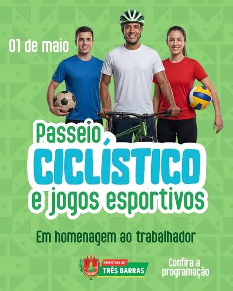 A Prefeitura de Três Barras preparou uma programação especial para celebrar o Dia do Trabalhador, comemorado em 1º de maio. O evento “Passeio Ciclístico e Jogos Esportivos” convida famílias, atletas e a comunidade em geral para um dia de integração, esporte e bem-estar.